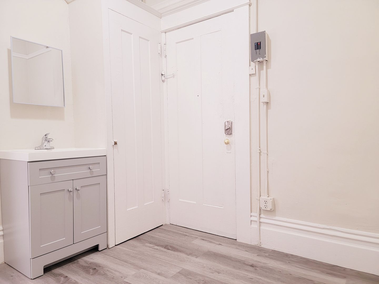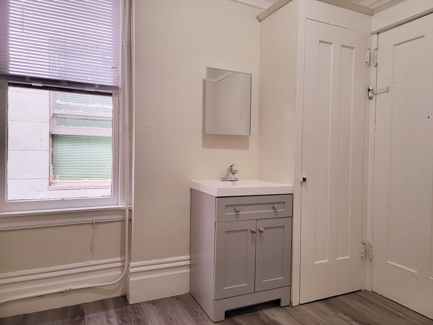 Shared bathroom is newly renovated! European tiling in modern shower and floor throughout. The building also has a communal kitchen and onsite washer/dryer.
