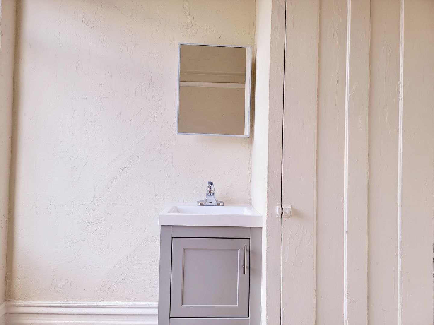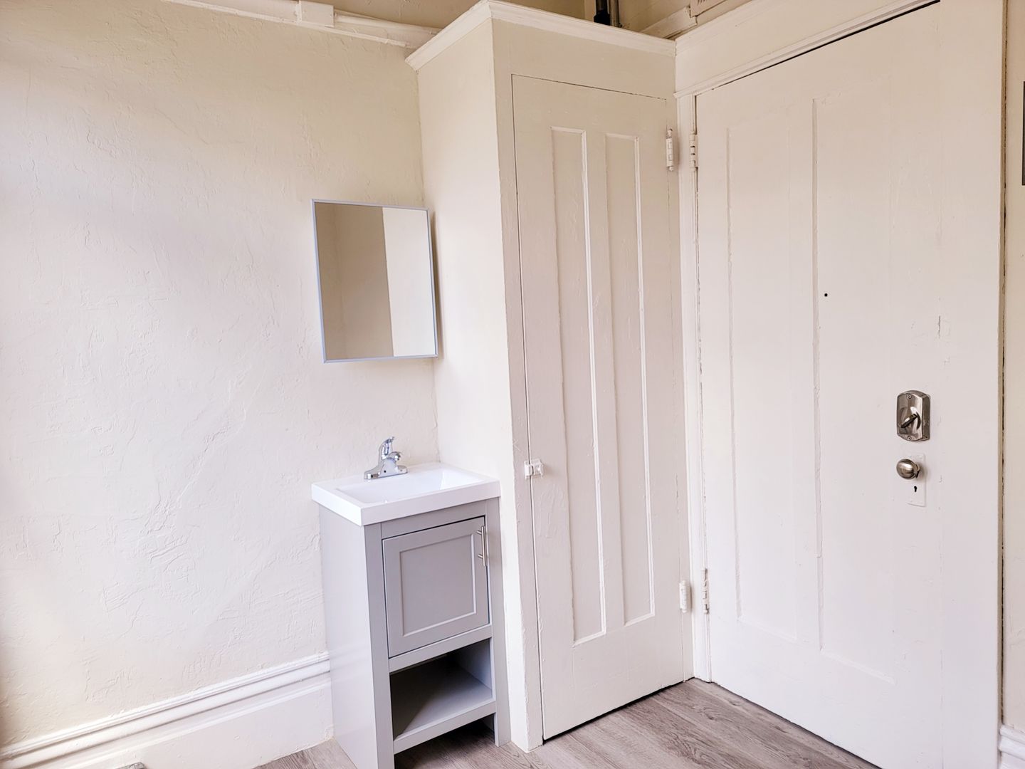 The modern design of the room including new charcoal color floors and a sleek in-unit, private sink and new mirror - very convenient!