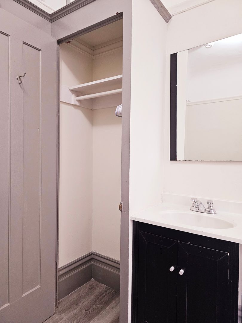 Shared bathroom is newly renovated! European tiling in modern shower and floor throughout. The building also has a communal kitchen and onsite washer/dryer.