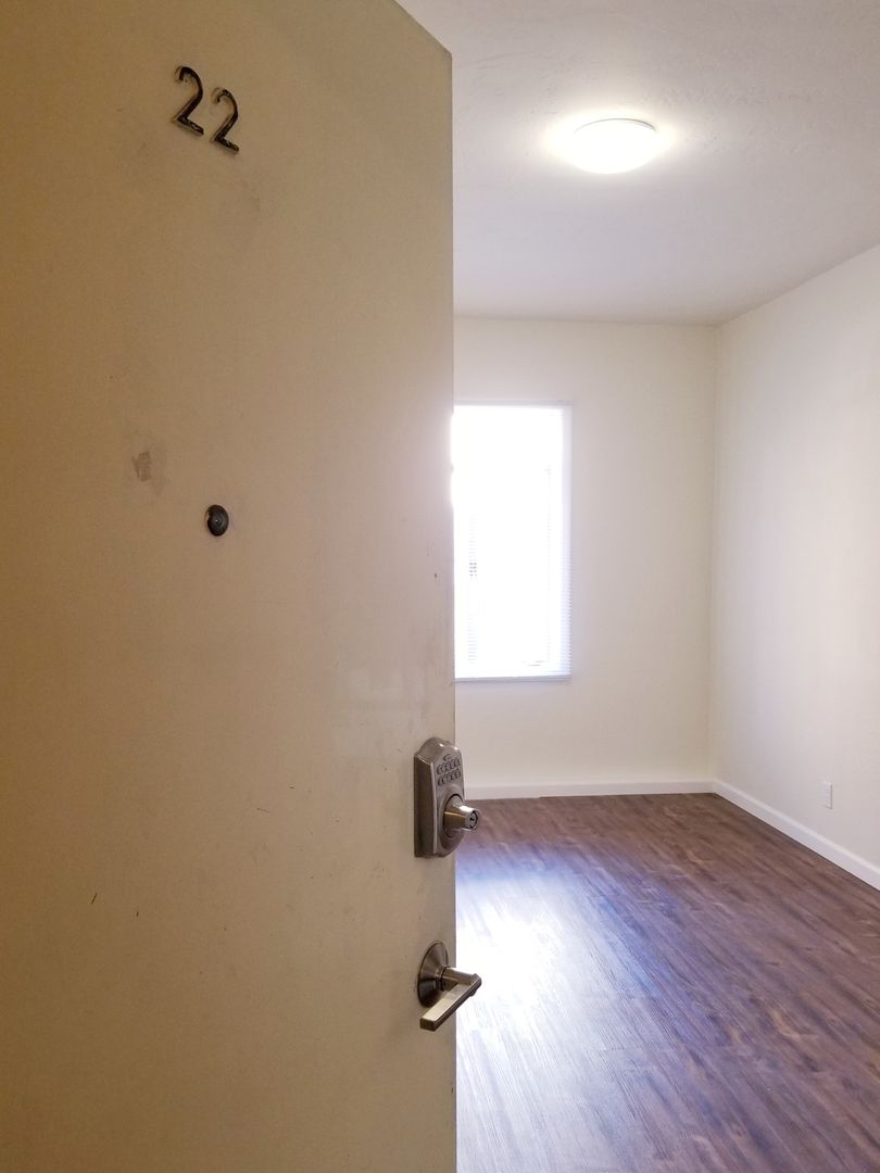 This renovated unit also includes mahogany colored flooring and a sleek in-unit kitchen. Bathroom has slate gray tiling. Bedroom features a large walk-in closet that is a rare commodity in San Francisco.