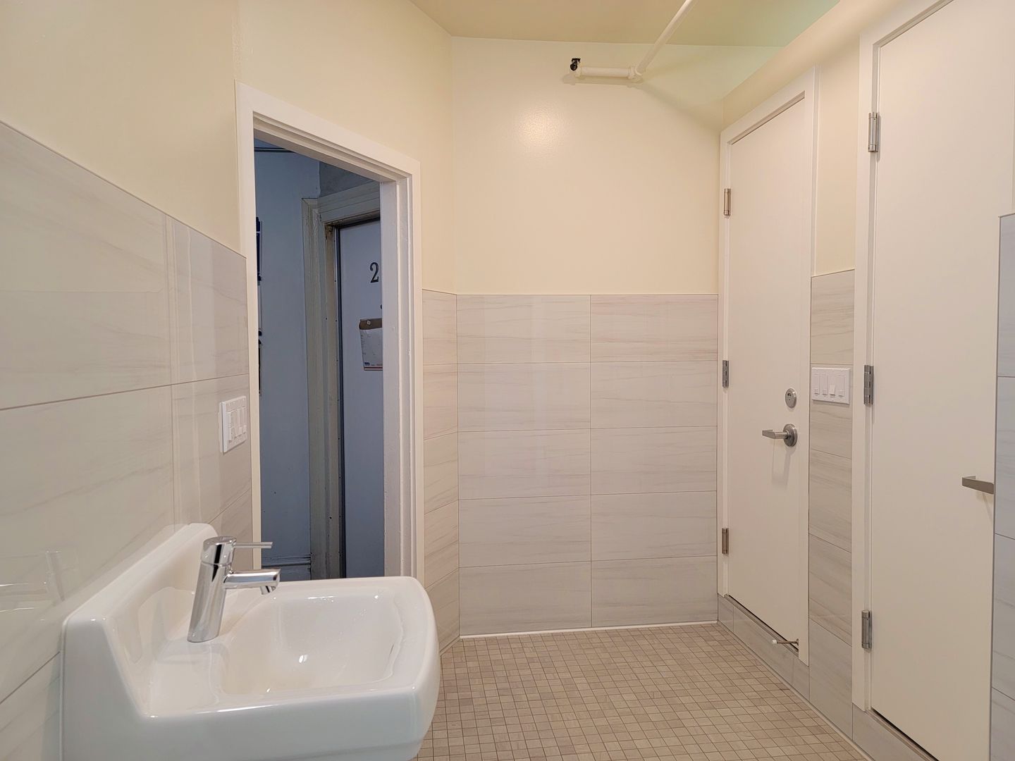 SRO Dorm style housing - shared bathroom and showers.
