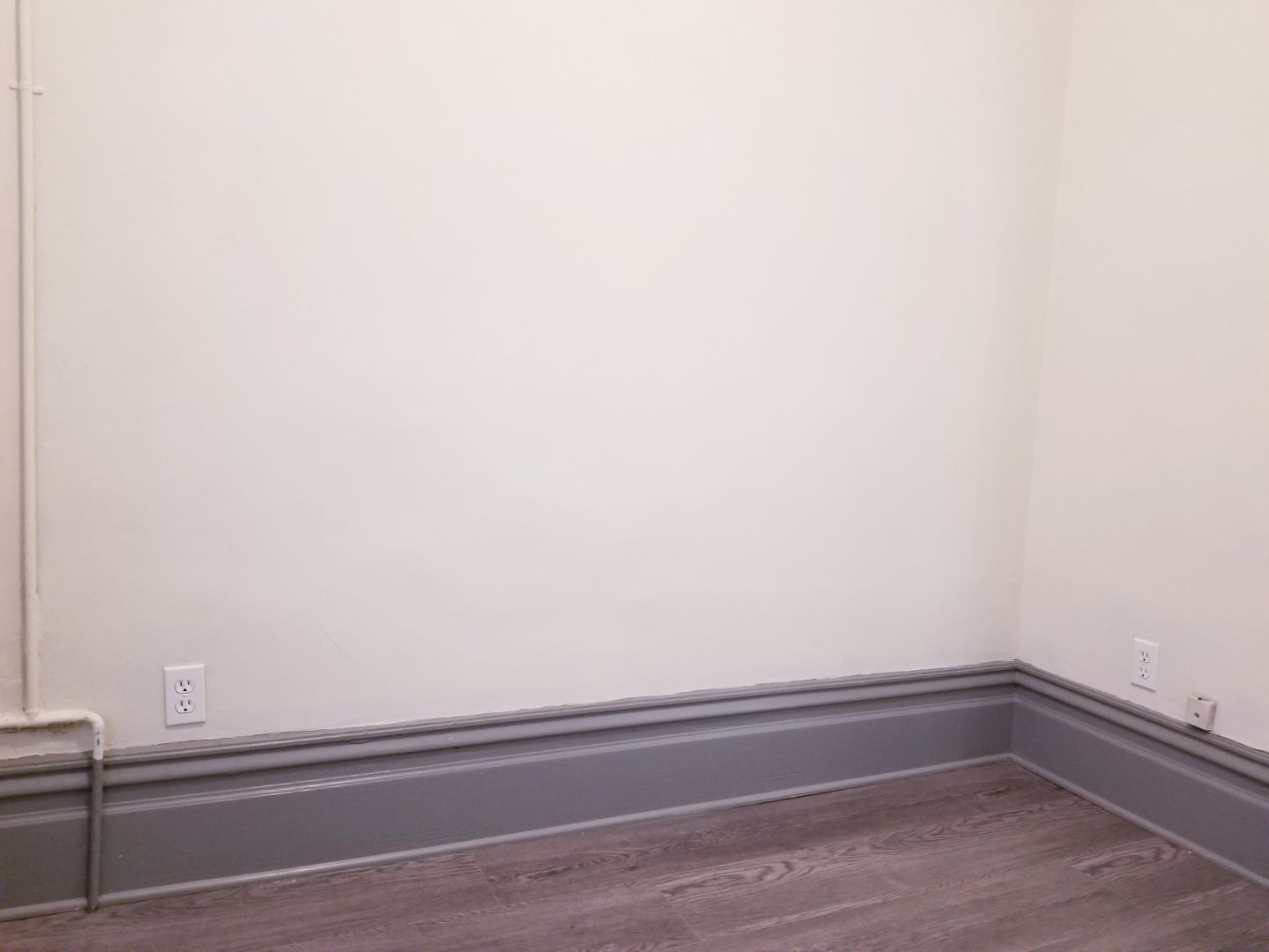 The modern design of this corner room has architecturally stunning walls. This room also includes new gray color floors and a sleek in-unit, private sink and mirror—very convenient!