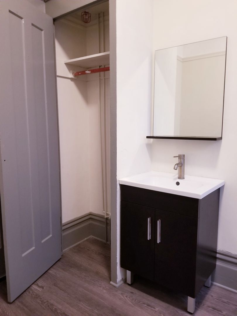 Shared bathroom is newly renovated! European tiling in modern shower and floor throughout. The building also has a communal kitchen and onsite washer/dryer.