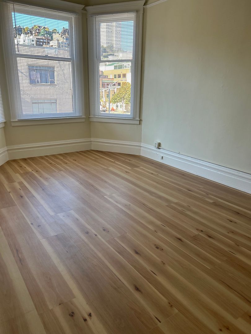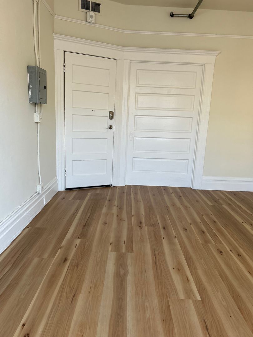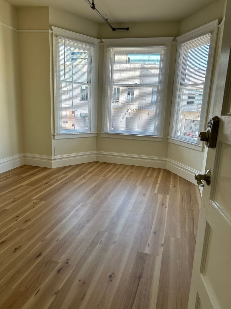 Unit features walnut-colored hardwood flooring. Bathroom is conveniently located down the hall. The room is spacious and the perfect size for anyone who wants to experience the hustle and bustle of real San Francisco living.