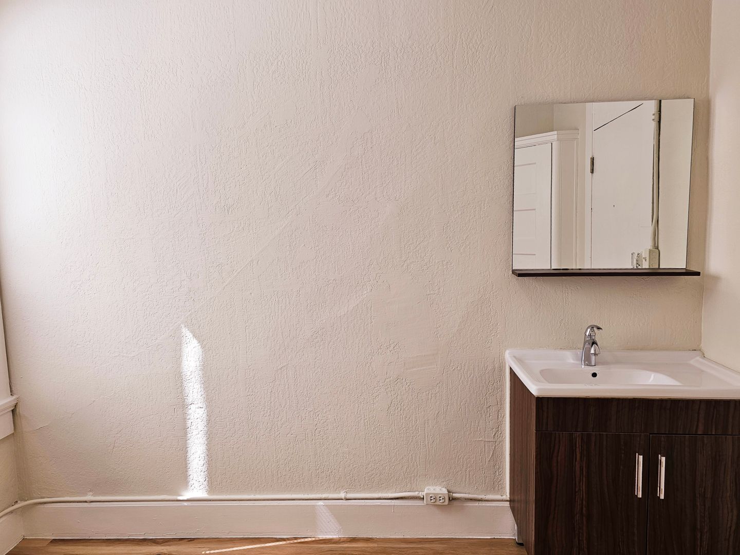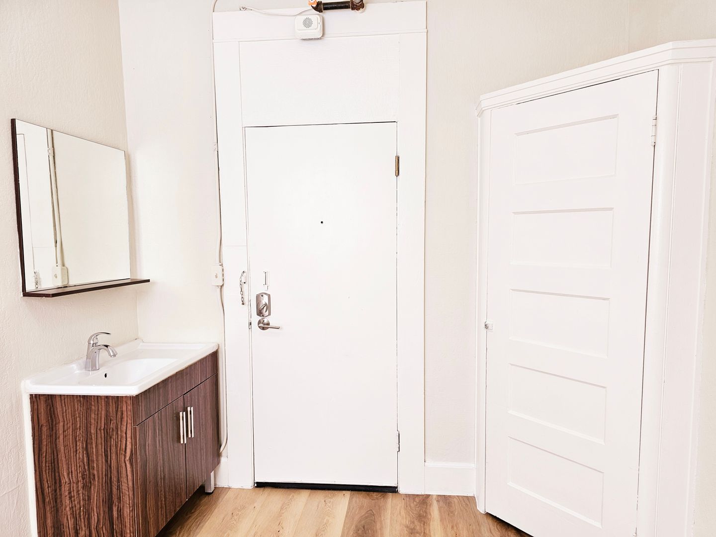 Unit comes with honey-colored flooring and in-unit sink/ vanity. Bathroom is conveniently located down the hall. The room is spacious and the perfect size for anyone who wants to experience the hustle and bustle of real San Francisco living.