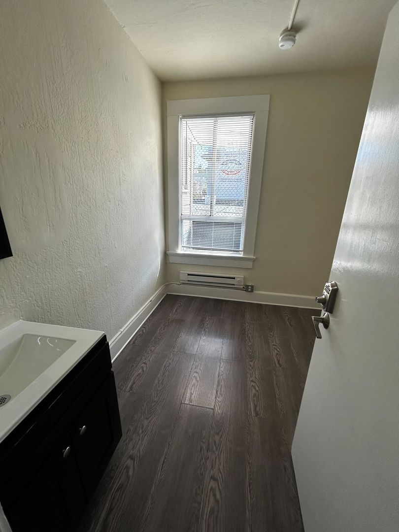 The building features a modern, renovated kitchen, including stainless steel fixtures and an electric stove top. Bathroom is conveniently located down the hall. The room is spacious and the perfect size for anyone who wants to experience the hustle and bustle of real San Francisco living.