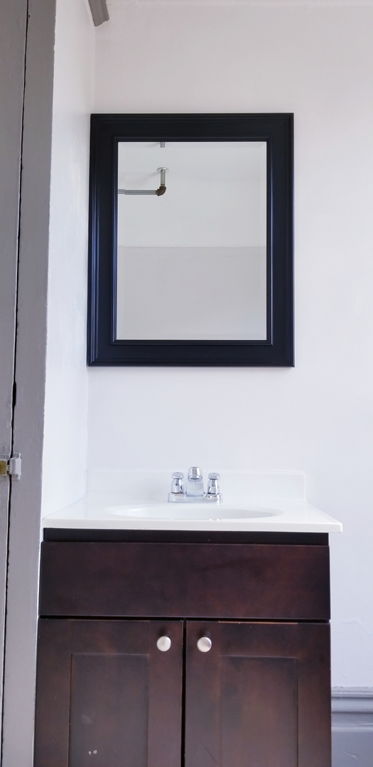 Shared bathroom is newly renovated! European tiling in modern shower and floor throughout. The building also has a communal kitchen and onsite washer/dryer.