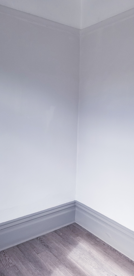 The modern design of this room has architecturally stunning walls. This room also includes new grey floors and a sleek in-unit, private sink and mirror—very convenient!