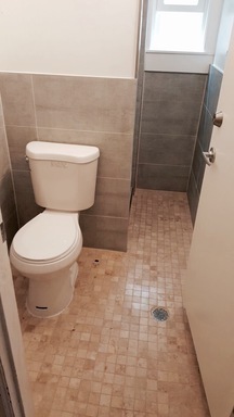 Shared bathroom is newly renovated! European tiling in modern shower and floor throughout. The building also has a communal kitchen and onsite washer/dryer.
