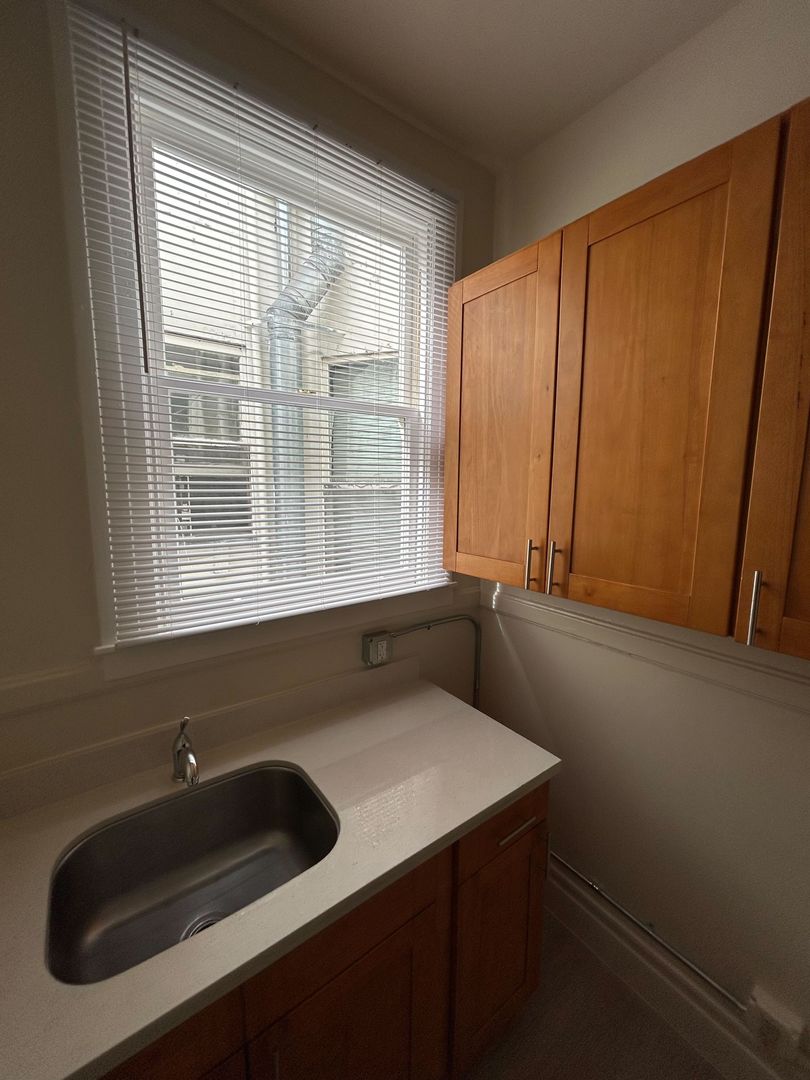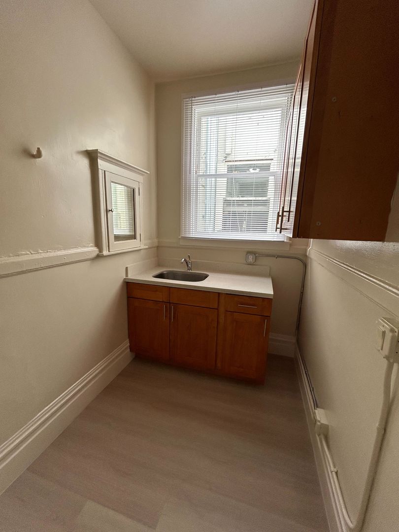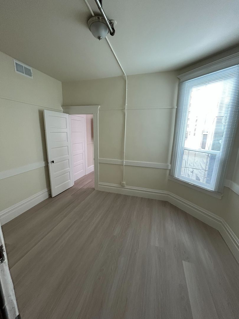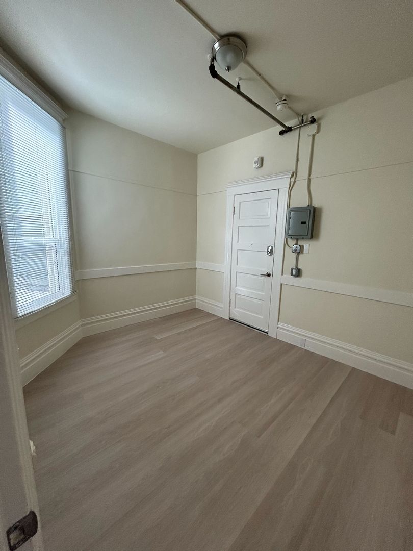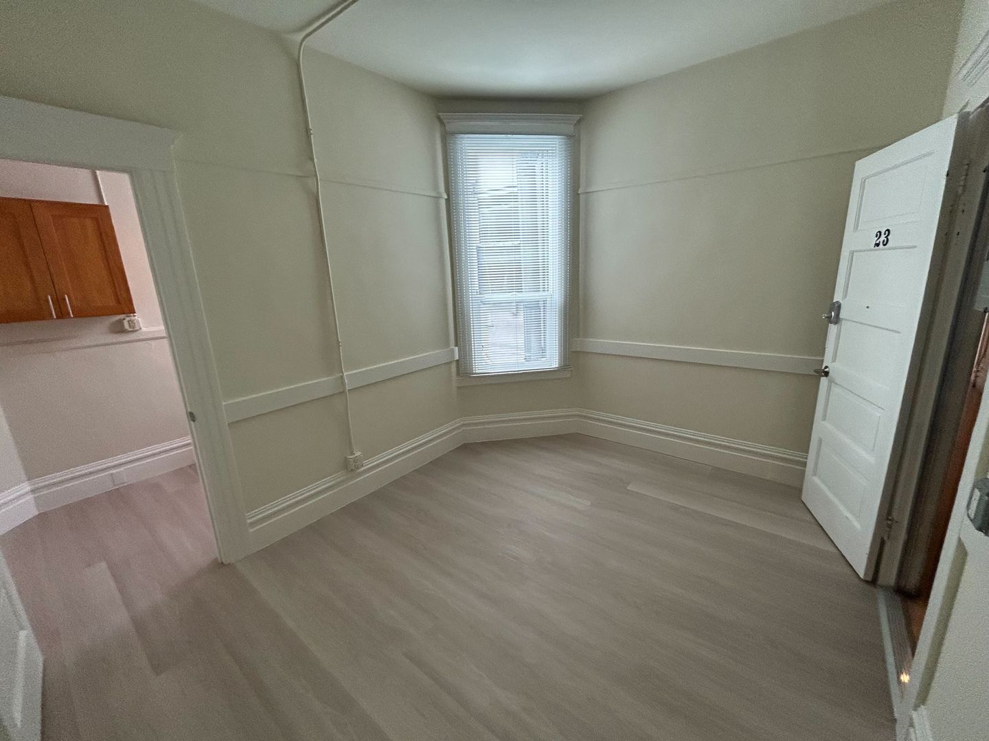 Unit features walnut-colored flooring. Bathroom is conveniently located down the hall. The room is spacious and the perfect size for anyone who wants to experience the hustle and bustle of real San Francisco living.